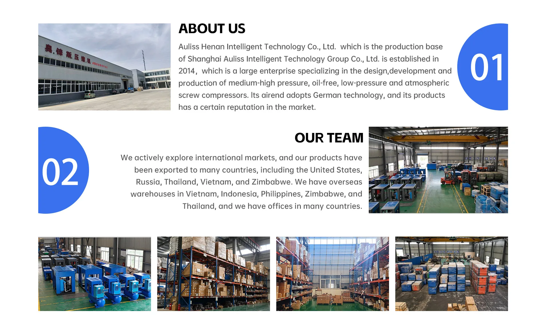 Productos principales:Compresor de aire, bomba de vacío de tornillo, accesorios de compresor de aire, soplador de tornillo